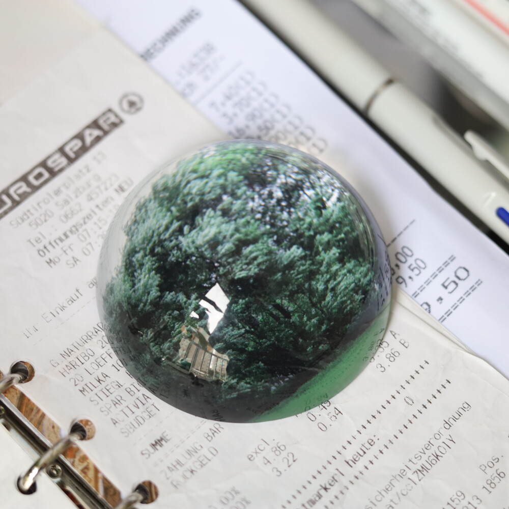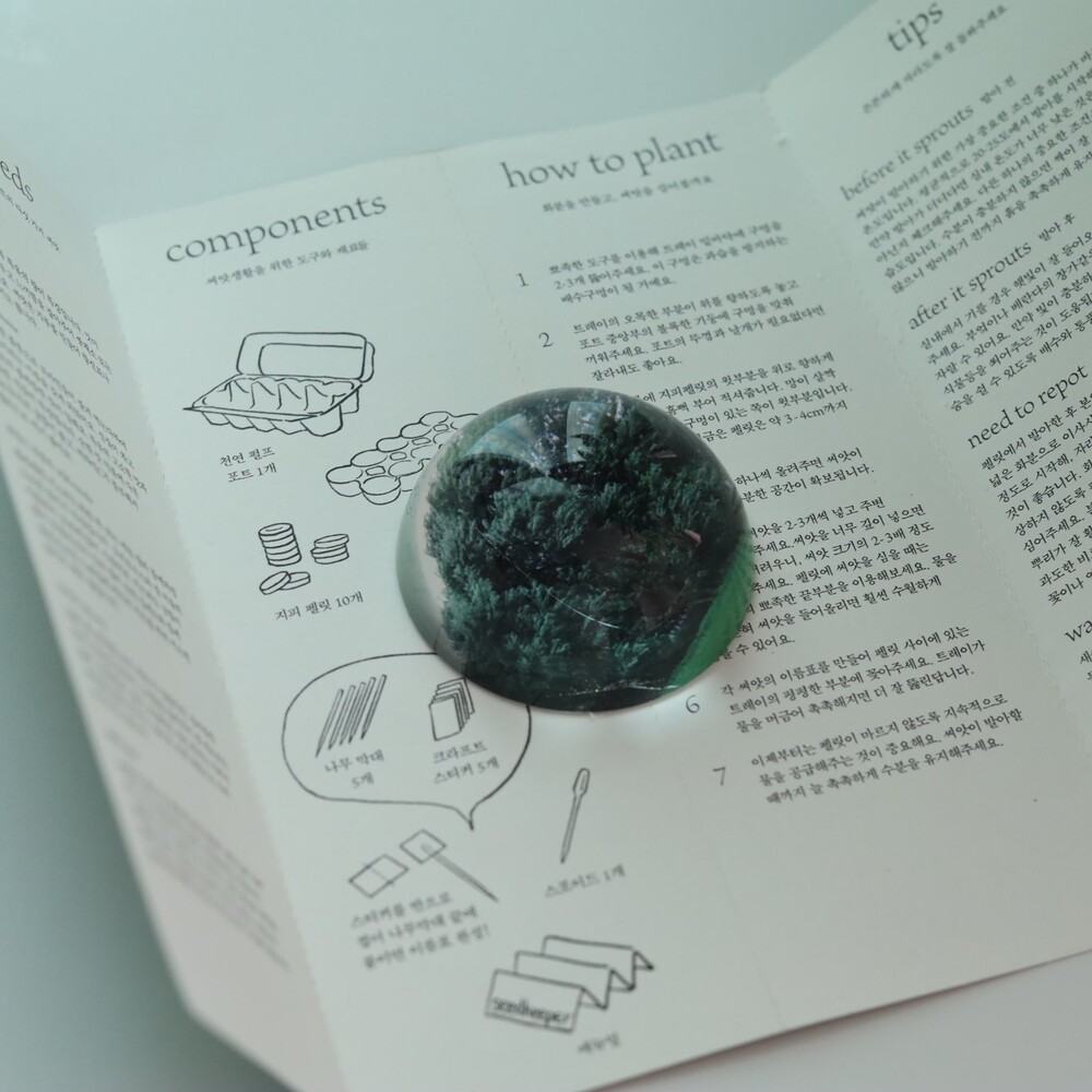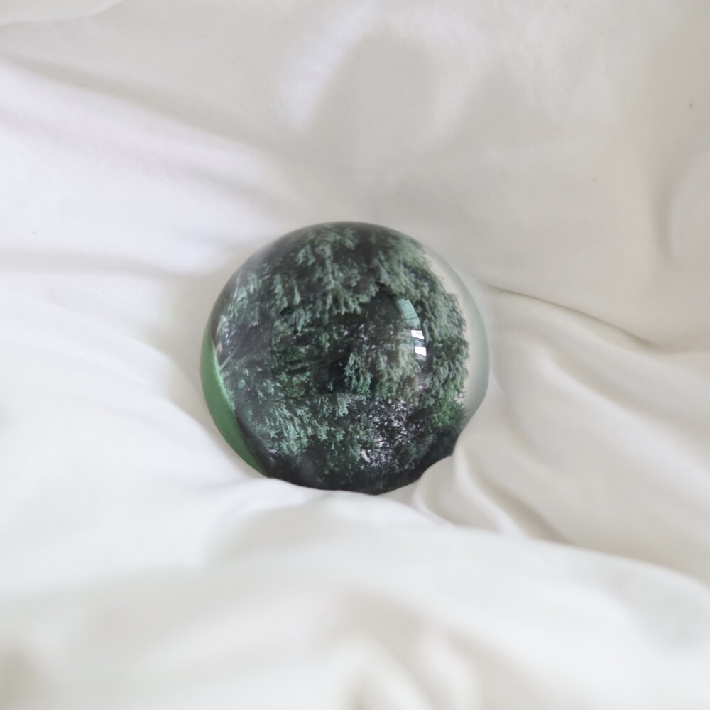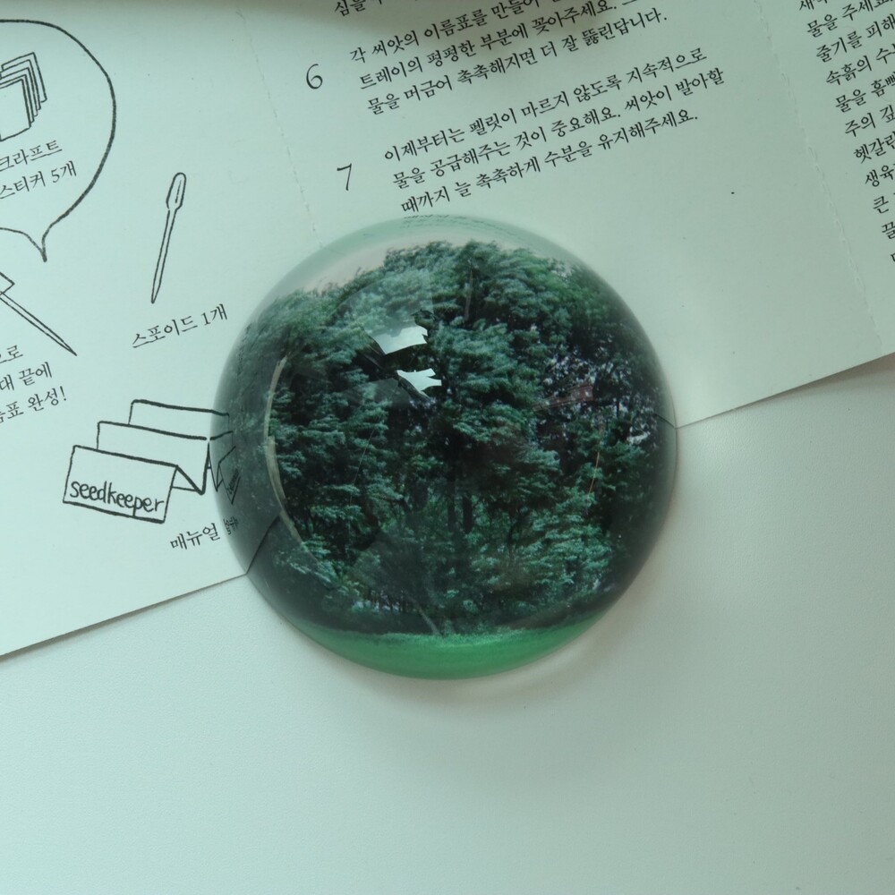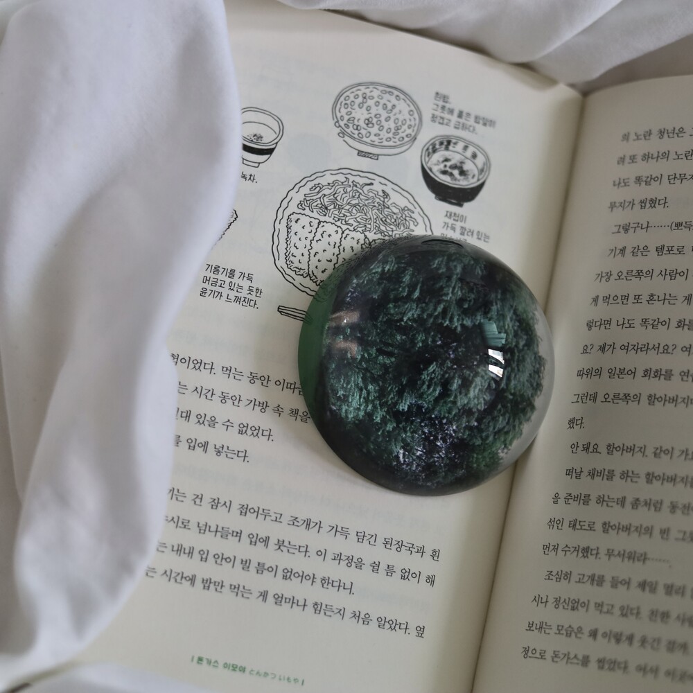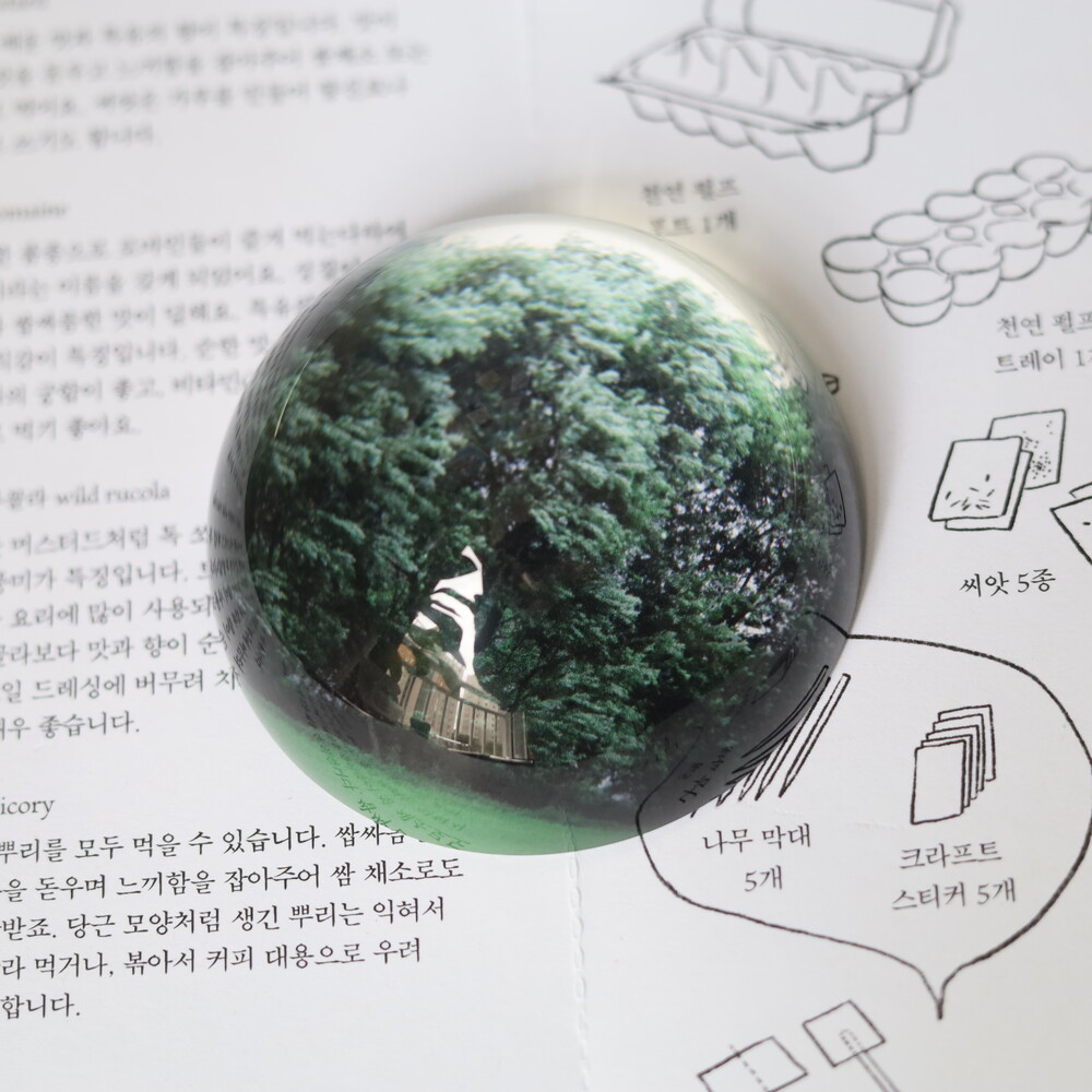 - 문진은 유리반구 아래 이미지가 인쇄된 하얀색 스티커가 접착되어 있는 형태입니다.