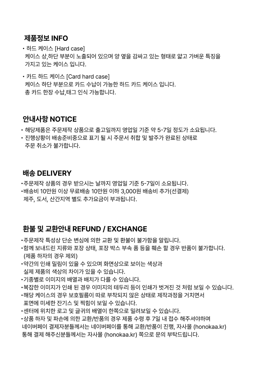 - 해당 제품은 '카드하드' 케이스와 '하드'케이스를 선택하여 구매하시는 제품으로 두 제품은 약간의 색상차이가 있습니다. 구매 전 해당사항 확인 후 구매 부탁드립니다.