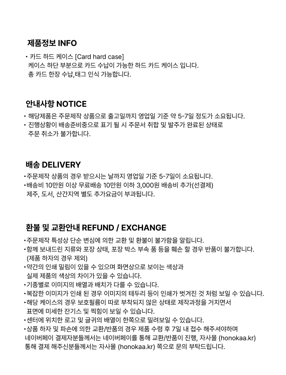 - 해당 제품은 '카드하드' 케이스와 '하드'케이스를 선택하여 구매하시는 제품으로 두 제품은 약간의 색상차이가 있습니다. 구매 전 해당사항 확인 후 구매 부탁드립니다.